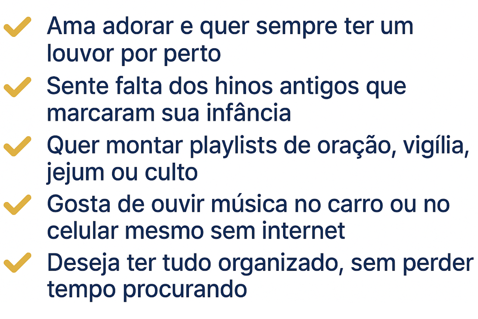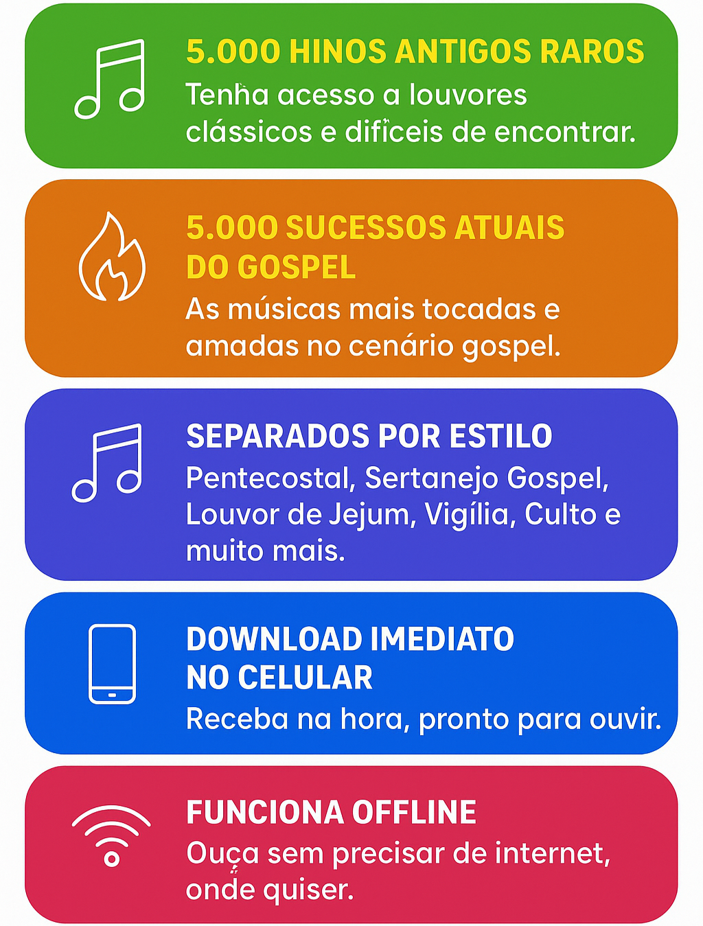 Além das 10.000 músicas, você recebe um bônus exclusivo: Pack de Wallpapers Gospel para deixar seu celular sempre inspirado.